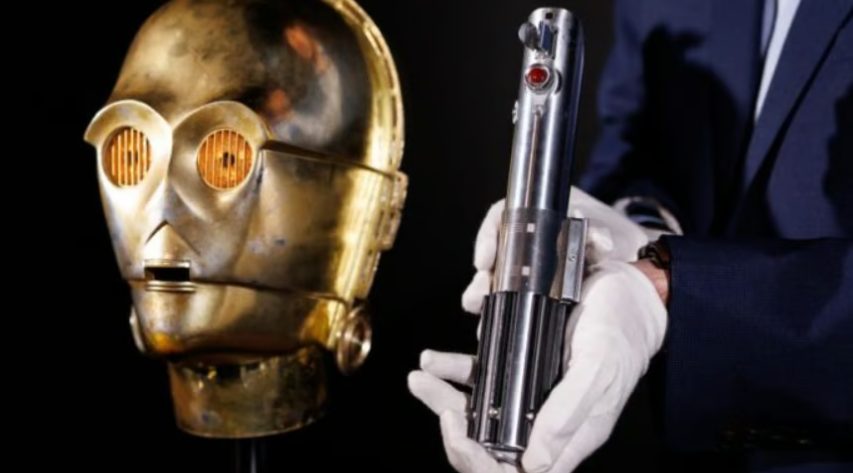 Entre os objetos de maior destaque estão peças ligadas ao universo de Star Wars. Um dos principais lotes é a cabeça do droide C-3PO utilizada por Anthony Daniels em O Império Contra-Ataca. O item preserva sua fiação original e possui uma antena frontal incomum, característica que o diferencia de outras versões utilizadas nas filmagens. A estimativa de venda varia entre 350 mil e 700 mil dólares.