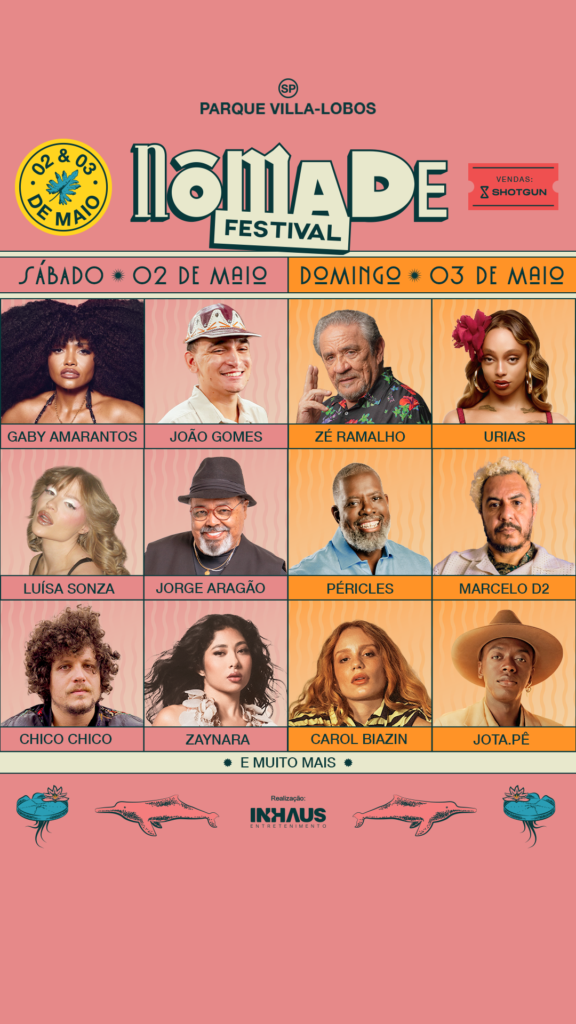 O Nômade Festival chega à sua sétima edição reafirmando sua proposta de reunir diferentes vertentes da música brasileira em um mesmo espaço. Marcado para os dias 2 e 3 de maio, no Parque Villa-Lobos, em São Paulo, o evento apresenta uma programação ampla que vai além dos shows, incluindo experiências gastronômicas, ativações de marcas e espaços pensados para convivência e troca cultural.