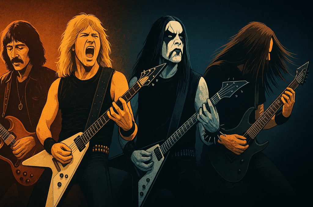 Uma viagem sonora pelas décadas que moldaram o metal — dos riffs sombrios de Birmingham às vertentes extremas e experimentais da atualidade.