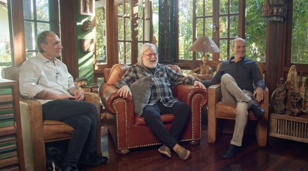 Gerson Conrad (esq.), Paulo Mendonça (centro) e Ney Matogrosso (dir.) em depoimentos para o projeto | Foto: Divulgação
