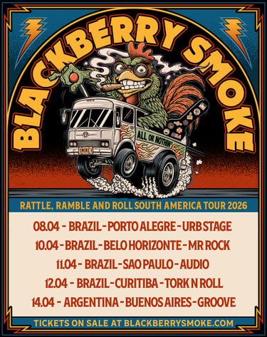 Depois de um intervalo de sete anos desde a última visita, o Blackberry Smoke anunciou oficialmente seu retorno ao Brasil para uma série de quatro shows em abril de 2026. A turnê, realizada pela Solid Music Entertainment, contempla apresentações em Porto Alegre, Belo Horizonte, São Paulo e Curitiba, reafirmando a relação construída com o público brasileiro ao longo da última década.