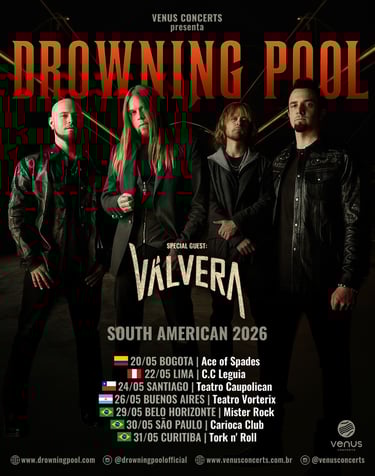 Ingressos: ingressomaster.com/evento/56/drowning-pool-south-american-2026
