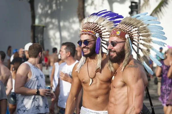 Foliões no Carnaval do Rio com fantasias que remetem a culturas indígenas norte-americanas | Foto: Reprodução