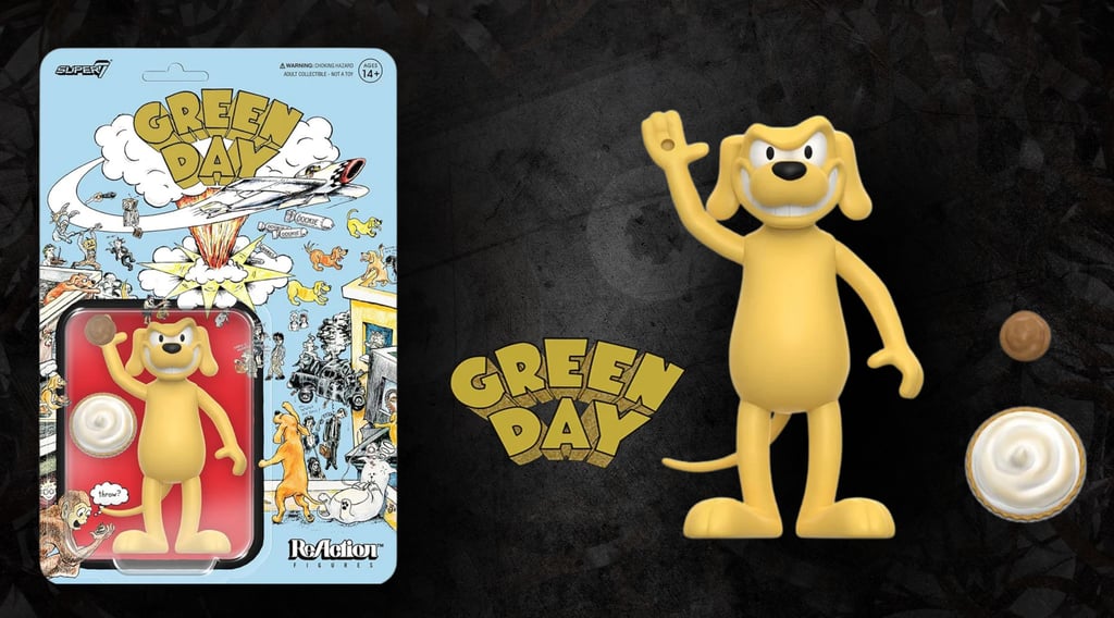 O Dookie Dog é uma figura de ação de 9,5 cm de altura, com múltiplos pontos de articulação, moldado para replicar fielmente o personagem que aparece na capa icônica do álbum “Dookie”.