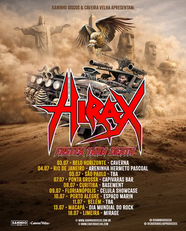 A turnê reforça a relação histórica da banda com o público brasileiro, que ao longo das décadas manteve o HIRAX como um nome recorrente em festivais e circuitos dedicados ao metal underground.