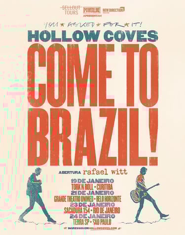 Inspirada pela energia do público, por um estilo de vida ligado à natureza e por um som que reflete genuinamente sua mentalidade, a banda chega ao Brasil sem grandes discursos promocionais, apostando na força do repertório e na experiência ao vivo como principal cartão de visitas. Para os fãs brasileiros, a turnê representa a oportunidade de vivenciar, pela primeira vez, a estética serena e introspectiva que transformou o Hollow Coves em um nome de destaque do indie folk internacional.