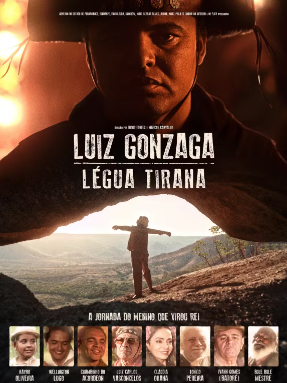 Com direção de Diogo Fontes e Marcos Carvalho, o longa-metragem revisita a vida e obra do artista que marcou gerações com sua sanfona e sua voz inconfundível. No elenco, Kayro Oliveira dá vida ao pequeno Gonzaga, Wellington Lugo assume o papel do músico na juventude, e Chambinho do Acordeom interpreta o sanfoneiro na fase adulta.