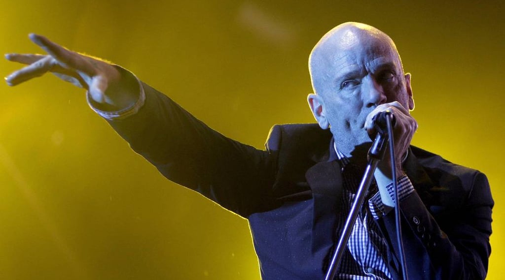 Michael Stipe em apresentação ao vivo, refletindo o legado que ainda influencia sua carreira solo. Foto: Reprodução