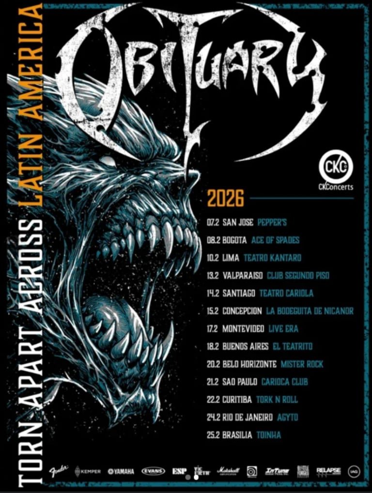 A veterana banda norte-americana Obituary retorna ao Brasil em fevereiro para uma série de apresentações dedicadas aos 35 anos de Cause of Death, segundo álbum de estúdio do grupo e um dos registros mais influentes da história do death metal. A turnê passa por Belo Horizonte, São Paulo, Curitiba e Rio de Janeiro, com produção da Xaninho Discos em parceria com a Caveira Velha.