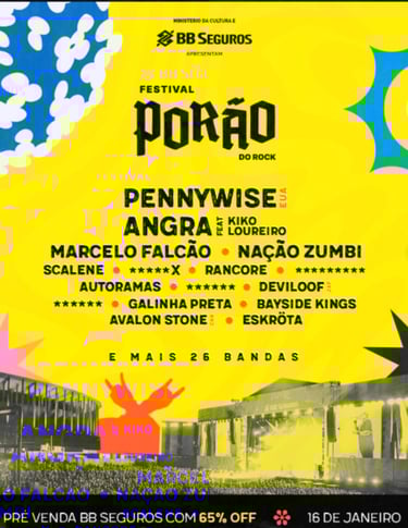 “Nos dias 22 e 23 de maio, Brasília volta a ser o epicentro do rock com uma nova edição do festival que move gerações e segue fortalecendo a cena independente no Brasil. Consolidado como um dos principais palcos de visibilidade para artistas independentes do país, o Porão do Rock dá voz ao novo sem esquecer suas raízes, reunindo nomes consagrados e talentos que estão escrevendo o futuro do rock. Serão dois dias intensos de shows nacionais e internacionais, experiências e encontros que celebram a música ao vivo em sua forma mais pura.”