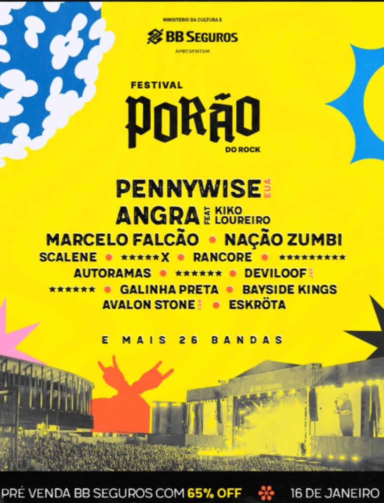 Algumas das atrações anunciadas para o Porão do Rock 2026 já têm outros compromissos confirmados no Brasil. O Pennywise, por exemplo, incluiu o país na rota da “We Are One Tour”, com apresentações marcadas em Porto Alegre (24/03), Florianópolis (25/03), Curitiba (27/03), São Paulo (28/03) e Rio de Janeiro (29/03), sempre acompanhado do Millencolin.