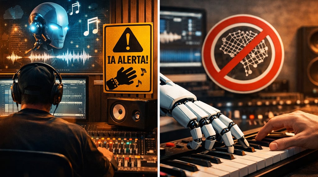 Pesquisa indica que a maioria dos produtores ainda resiste ao uso de IA na criação musical, com apenas 17% favoráveis à tecnologia — Imagem gerada por IA